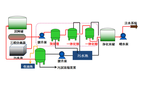 該工藝在來水礦化度≤10000mg/L,含油≤150mg/L,懸浮物含量≤150mg/L的情況下,處理后的水質滿足含油≤5mg/L,懸浮物含量≤1mg/L,粒徑中值≤1μm。該裝置能有效處理各種稠油污水、注聚污水、注凝膠污水、低溫高濁污水等(指標以現場測試為準,含壓裂液…